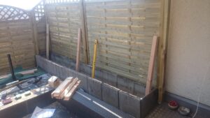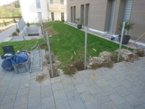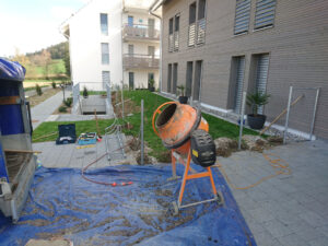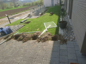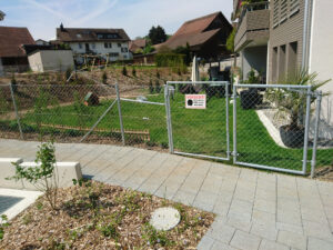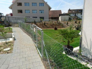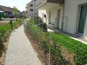 Unter dem Zaun wurden Platten gelegt, somit gibt es kein mühsames nachputzen beim Rasenmähen.